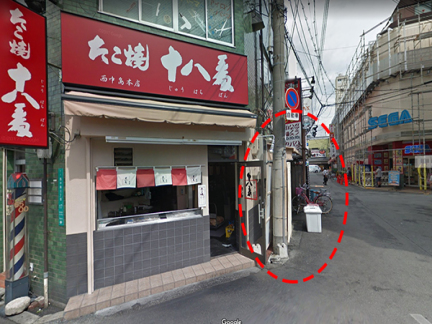たこ焼十八番 西中島本店前での待ち合わせ